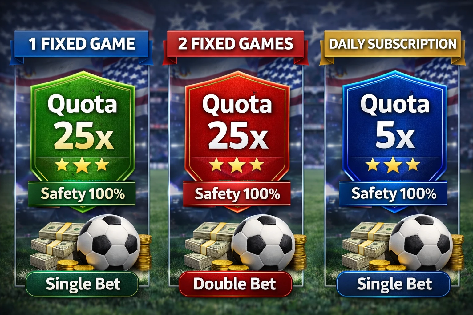 Purchase fixed football matches from our agency, where we guarantee manipulated results for every match and a 100% chance of winning. If you’re interested in subscribing, please contact our support team. We offer two packages of fixed football matches: the first package includes 1 single match with 25 odds and 2 double fixed matches with odds of over 400. SURE FIXED GAMES 100%